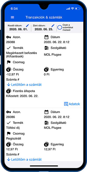 Visszanézheted a beterhelt összegeket, részletesen ellenőrizheted, hogy mikor, milyen tételt, mennyiért számláztunk, illetve itt tudod letölteni a számláidat pdf-ben.